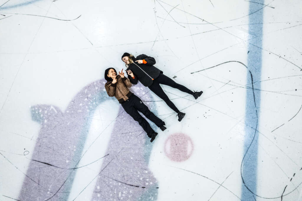 Emma Fältin ja Iida Valkosen teos RINK 2022-23on audiovisuaalinen installaatio. Monikanavaiseksi videoinstallaatio on muotoutunut yhteistyössä SM-tason ringettejoukkueen kanssa. Luova ajattelu ja kehollinen piirtäminen ovat teoksen keskiössä; luistimen jäähän piirtämä viiva on osa sovittua kehon kieltä. Audiovisuaalinen teos kunnioittaa sisällöllisesti toisen ihmisen tilaa, mutta kutsuu myös katsojan osaksi teosta. Teoksen sisällä katsojan liike heijastuu 4-kanavaiseen äänimaailmaan, ja tulee osaksi sitä. Pelivälineiden piirtämä viiva jään pintaan muodostuu kehollisen vuorovaikutuksen liikkeestä.