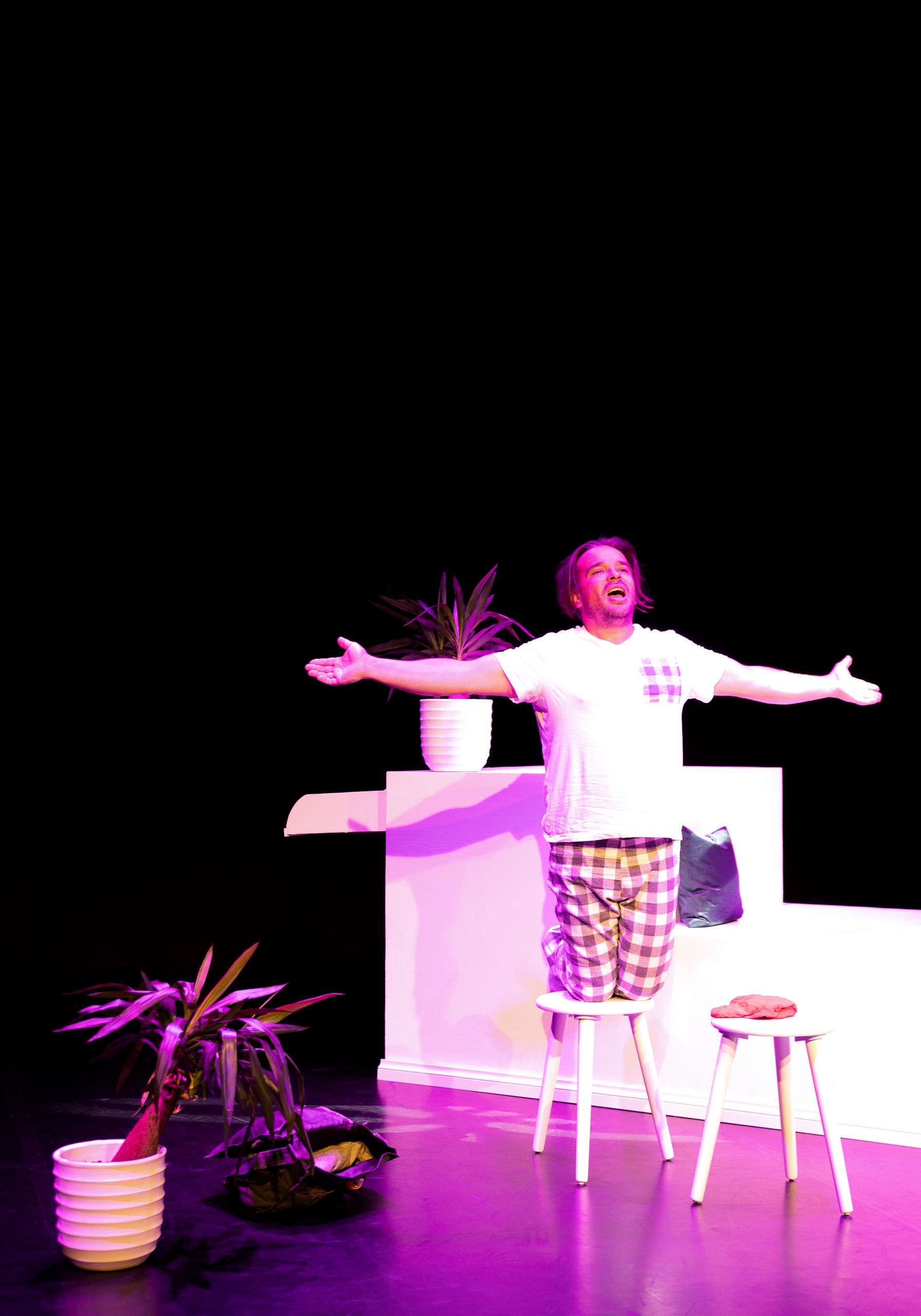 Monologiesityksen näyttelee Teemu Kettula ja näytelmän on ohjannut Katja Kujala. Esityksen on käsikirjoittanut Mari-Johanna Kettula, joka vastaa myös näytelmän äänisuunnittelusta. Valosuunnittelu on Kimmo Häyhän ja lavastus- sekä pukusuunnittelu Milla Uiton käsialaa. Esityksen on tuottanut Mari-Johanna Kettula.