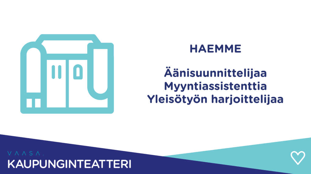 Vaasan kaupunginteatteri hakee nyt joukkoonsa äänisuunnittelijaa, myyntiassistenttia ja yleisötyön harjoittelijaa.
