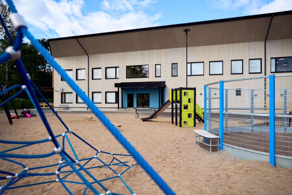 Piha-alueet on eritelty niin, että alaluokille on oma sisään- ja uloskäyntinsä sekä pihansa uudisrakennuksen puolella.