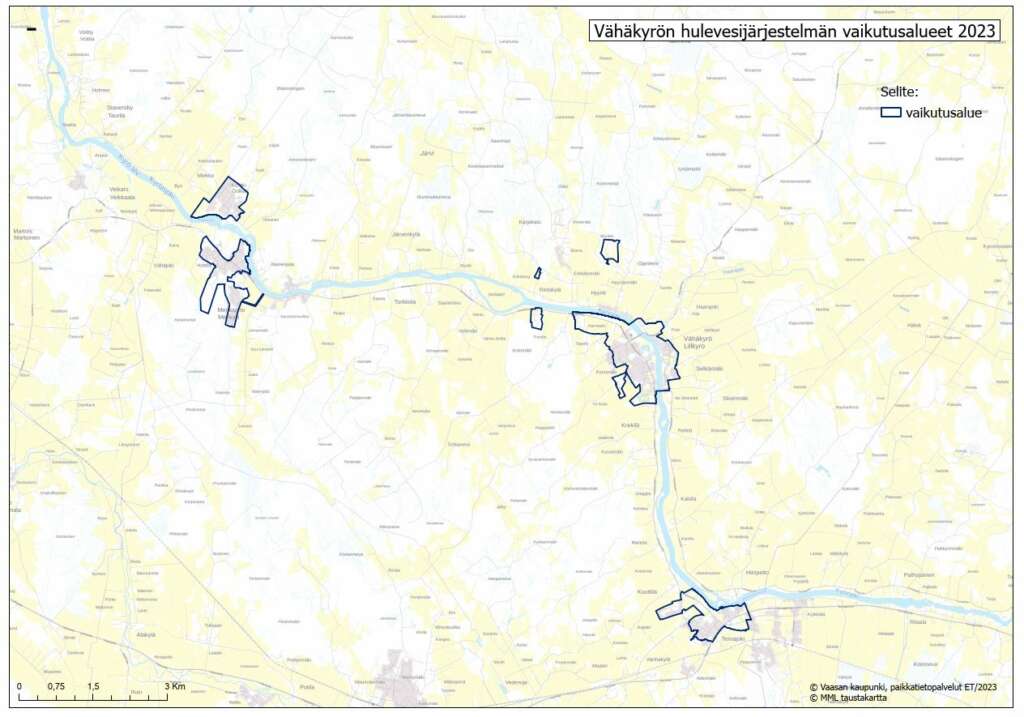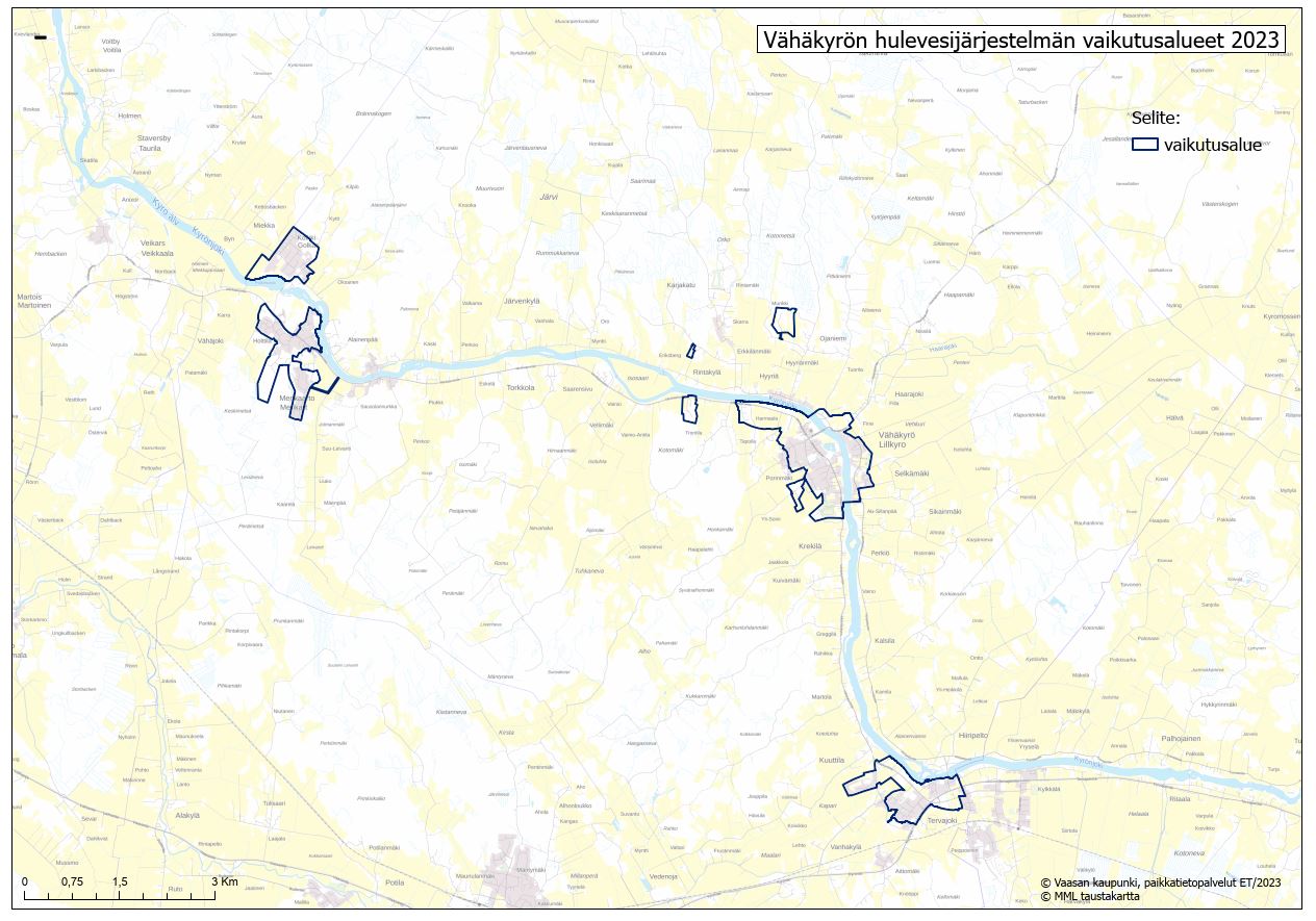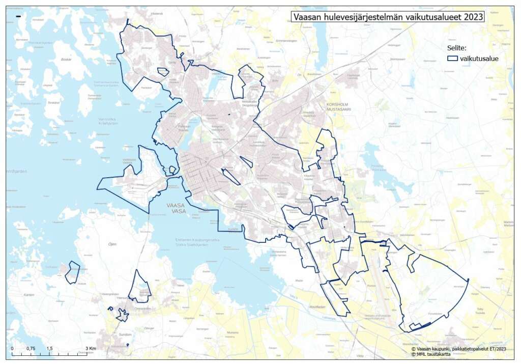 Hulevesijärjestelmän vaikutusalueet ovat Vaasan ja Vähänkyrön asemakaavoitetut alueet.