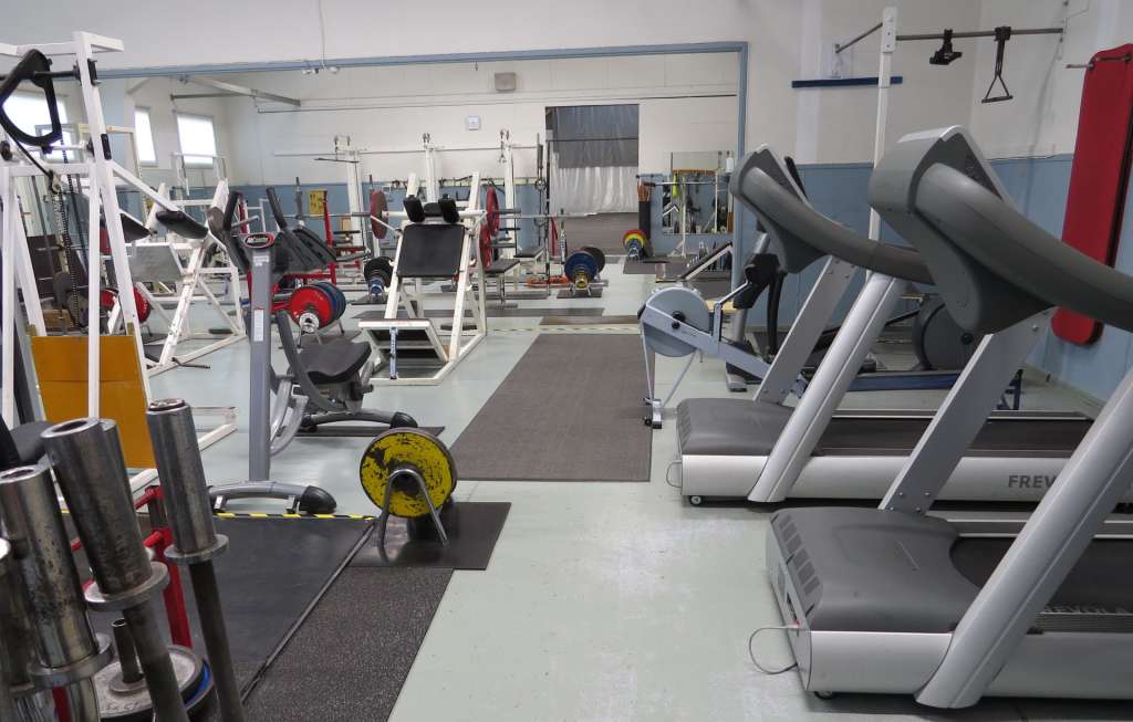 Voimailutilassa on perinteisiä kuntosalilaitteita sekä erillinen vapaiden painojen harjoittelualue.