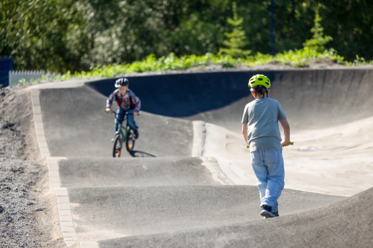 Pump track rata sijaitsee keskeisellä paikalla Onkilahden toimintapuistossa.