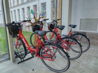 Borrow the bike with your library card at the first floor information desk in the main library. The loan period for the bikes is one week. Each bike comes with a helmet.