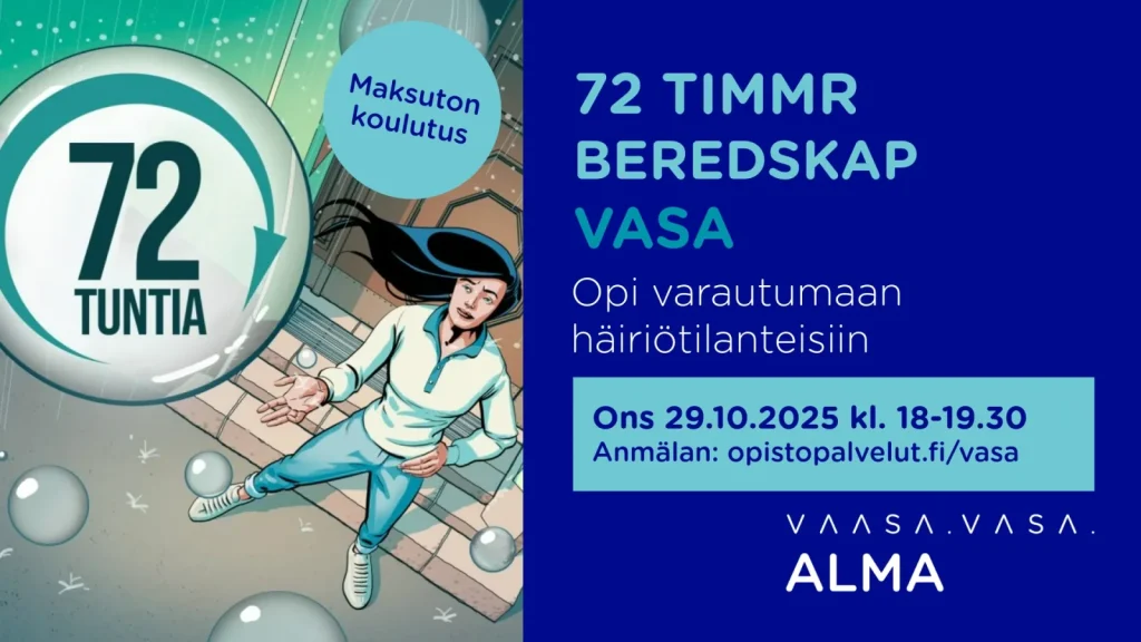 Medborgarinstitutet Alma erbjuder under hösten 2025 aktuell och viktig information om hushållens beredskap genom att arrangera föreläsningen ”72 timmar beredskap”. Föreläsningen är öppen för alla och avgiftsfri.