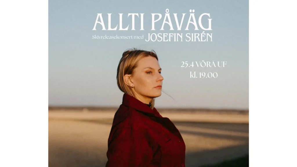 Den 24.4.2026 släpper Vöråbördiga Josefin Sirén sitt efterlängtade andra album Allti Påväg och firar det med en skivreleasekonsert på hemmaplan på Vörå UF:s scen 25.4. Josefin Sirén, som gör musik på Vörådialekt, släppte sin första skiva 2022 och har sedan dess med bl.a låtarna Klöver Åtton och Jåolin Brindär blivit en självklar del av den Österbottniska dialektmusikvågen. Nu är hon tillbaka med ett till fullängdsalbum och ger en konserthelhet där hon tillsammans med sitt band spelar alla låtar från albumet, varvat med några höjdpunkter från hennes hennes tidigare repertoar.
