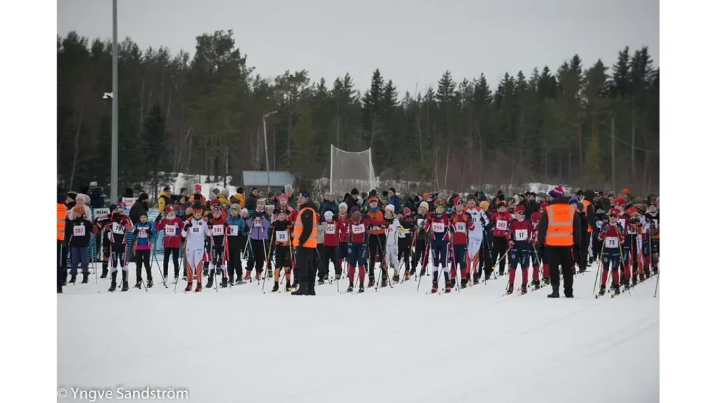 Barn under skolåldern (födda 2018 eller senare) skidar 1,5 kilometer, medan de äldre skidar 5 kilometer.