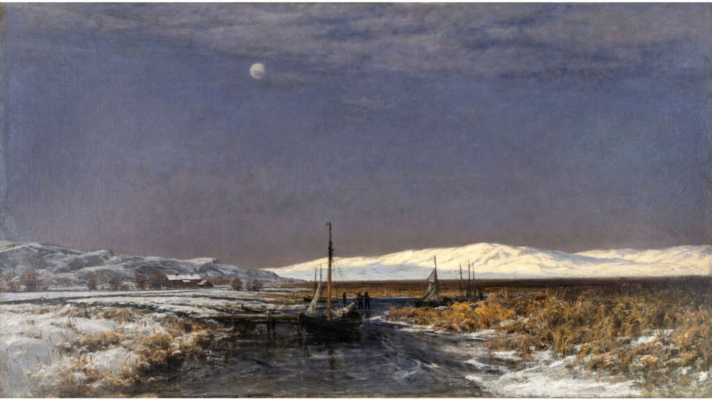 Ylin kuva: Berndt Lindholm. Marraskuun ilta Hisingsvassenilla, 1876. Öljy kankaalle. Kuva: Hossein Sehatlou, Göteborgs konstmuseum