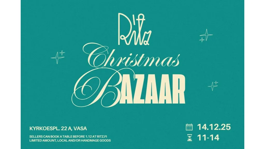 Christmas Bazaar at Ritz on Sunday the 14th of December from 11 o’clock until 14.00. There will be local sellers with everything from baked goods, jewellery and books. Come shop you Christmas gifts locally. The café is open and have rice porridge, glögg and cookies. You can also buy Ritz kino tickets and gift cards!