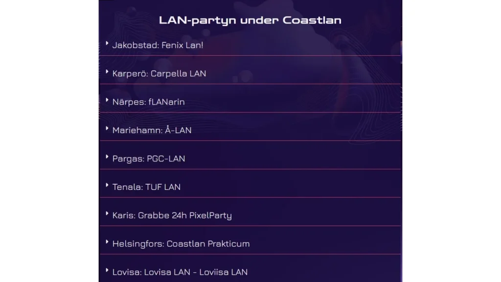 Coastlan är ett projekt som samlar gamers i Svenskfinland till lokala LAN-partyn längs den finlandssvenska kusten.