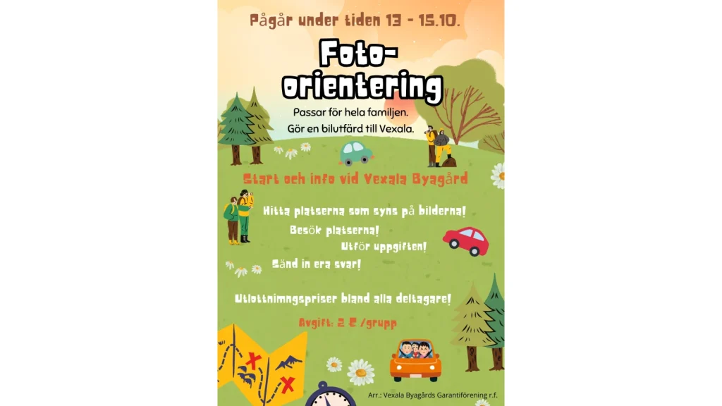 Passar för hela familjen. Gör en bilutfärd i Vexala. Start och instruktioner vid Vexala byagård.