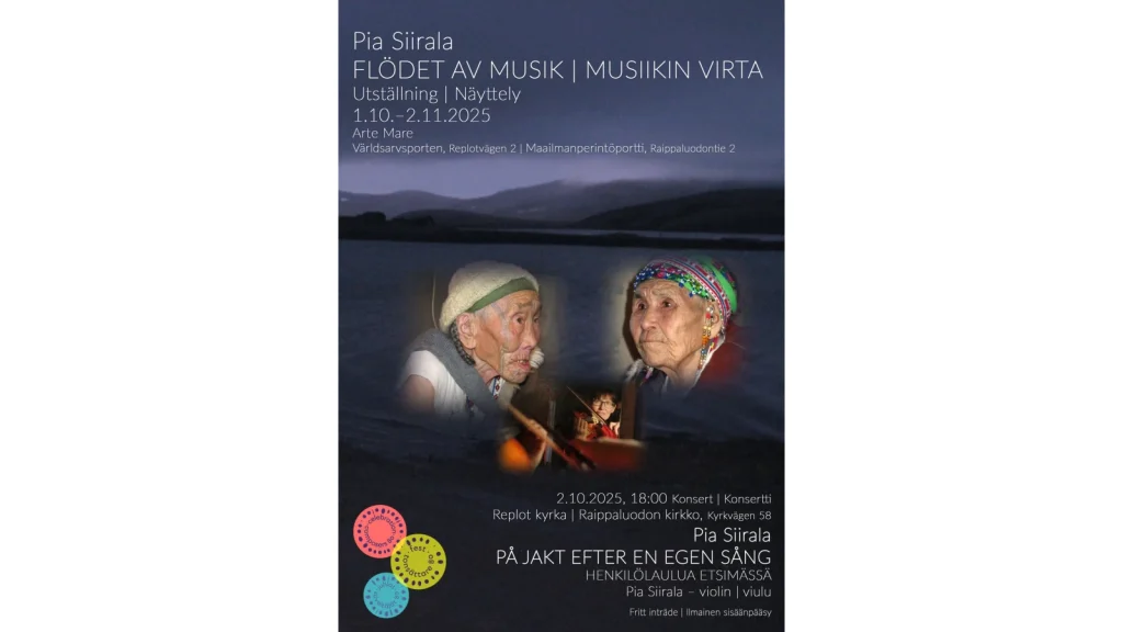 MUSIIKIN VIRTA Multimedianäyttely – kertomus kenttämatkoista koilliseen Siperiaan, tšuktšien maille avataan viulukonsertilla Raippaluodon kirkossa torstaina 2.10. klo. 18.