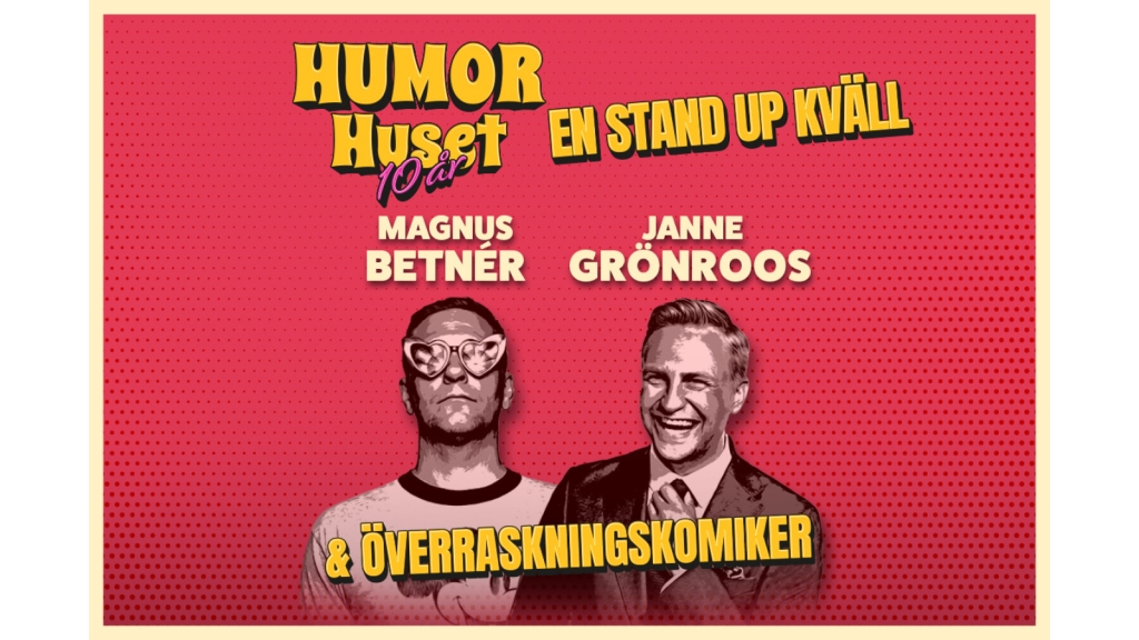 I höst har det gått 10 år sedan den ambulerande stand up klubben HumorHuset drog i väg på sin allra första turné, då med både Magnus Betnér och Janne Grönroos i spetsen. Fredagen den 12 december återvänder de till Vasa. Under kvällen på Ritz uppträder även överraskningskomiker! Inte en kväll du vill missa!