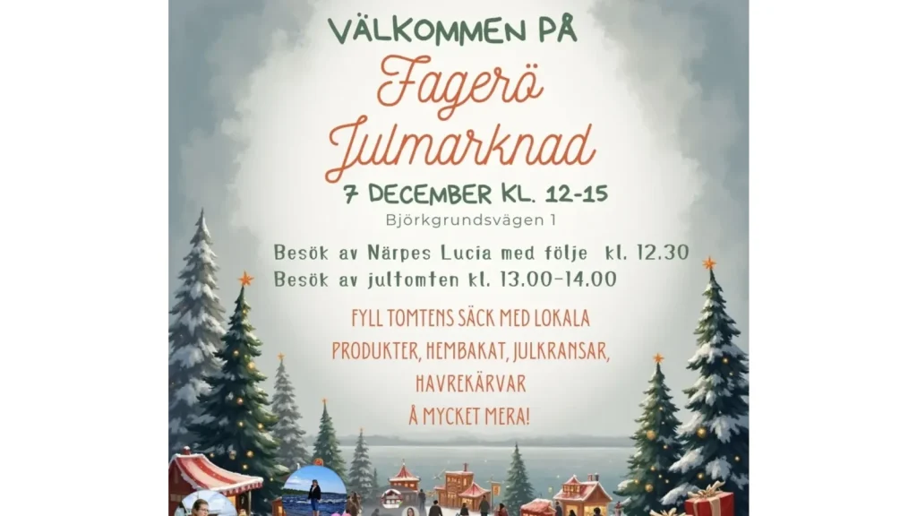 Söndag 07.12 kl. 12-15 ordnas den traditionella julmarknaden på Fagerö.