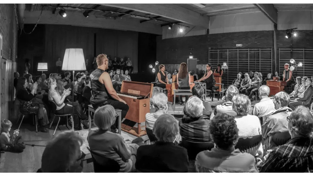 Esityksessä Milla Viljamaa ja Leija Lautamaja Suomesta, Kristina Bergström ja Janne Strömstedt Ruotsista sekä Lena Jinnegren ja Mariann Torset Norjasta tutkivat mitä kuuden matkaharmoonin ja ennakkoluulottomien muusikoiden yhdistelmällä voi saada aikaan. Lopputulos on Marja-Liisa Orgelsuite ja sen ennenkuulumaton tilassa liikkuva äänimaisema.