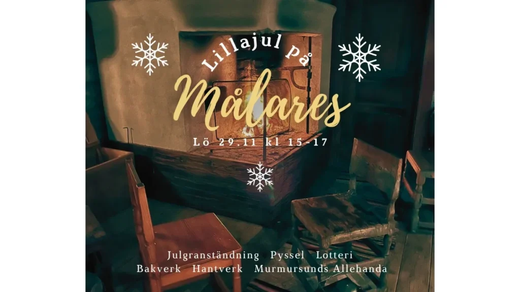Julgranständning, jultomte och pyssel för barn. Försäljning av bakverk, hantverk, kransar, Murmursunds Allehanda m.m.