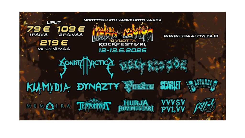 Lisää Löylyä Rockfestival 12.6 – 13.6.2026 järjestetään Vaasan Vaskiluodossa, (entisen Wasalandian paikalla)