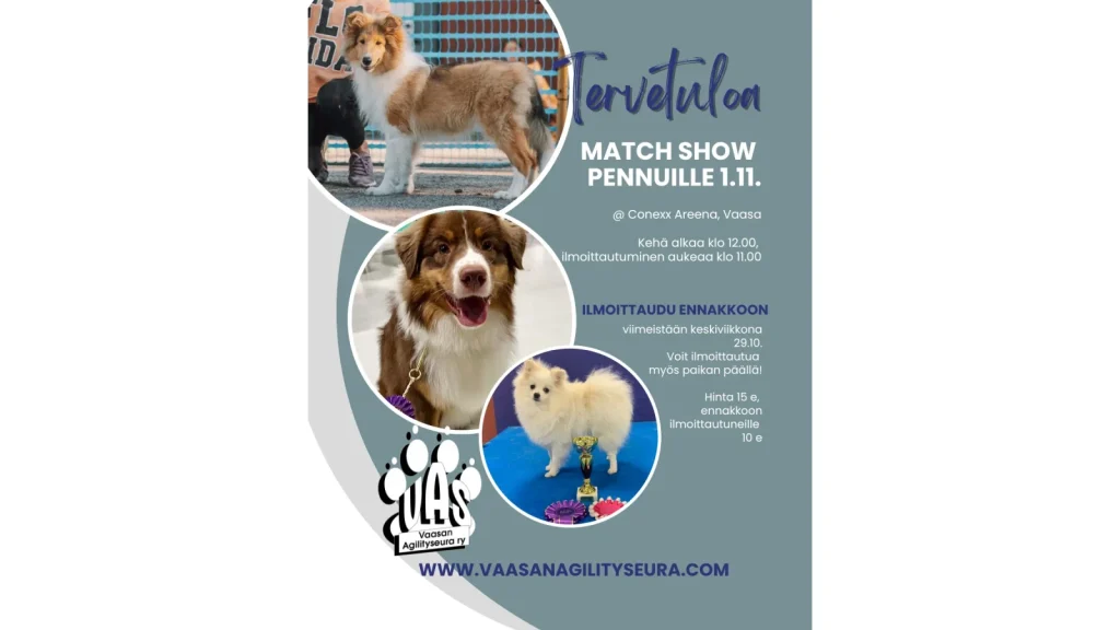 Tervetuloa pentujen omaan Match Show’hun Conexx Areenalle lauantaina 1.11. Pennut voivat osallistua heti kun rokotukset ovat kunnossa. Yläikäraja on 1 vuotta.