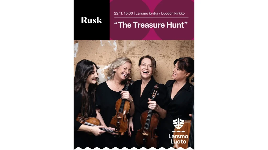 Konserten, som har titeln “The Treasure Hunt”, framförs av Vertavo-kvartetten, som är en internationellt uppmärksammad ensemble och en av de främsta stråkkvartetterna i dag. Programmet innehåller musik av bland andra Schumann, årets tonsättare Dobrinka Tabakova, Mozart och Bartók.
