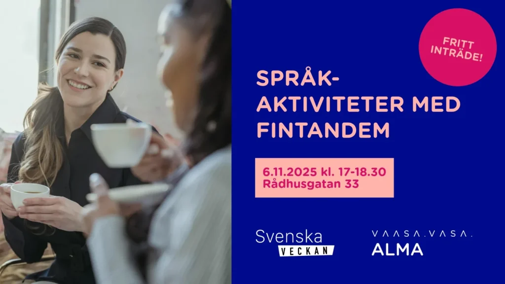 På Svenska dagen erbjuder Alma en öppen aktivitetskväll med olika språk (tandem). Pröva på olika språkaktiviteter och öva ett annat språk än ditt modersmål!
