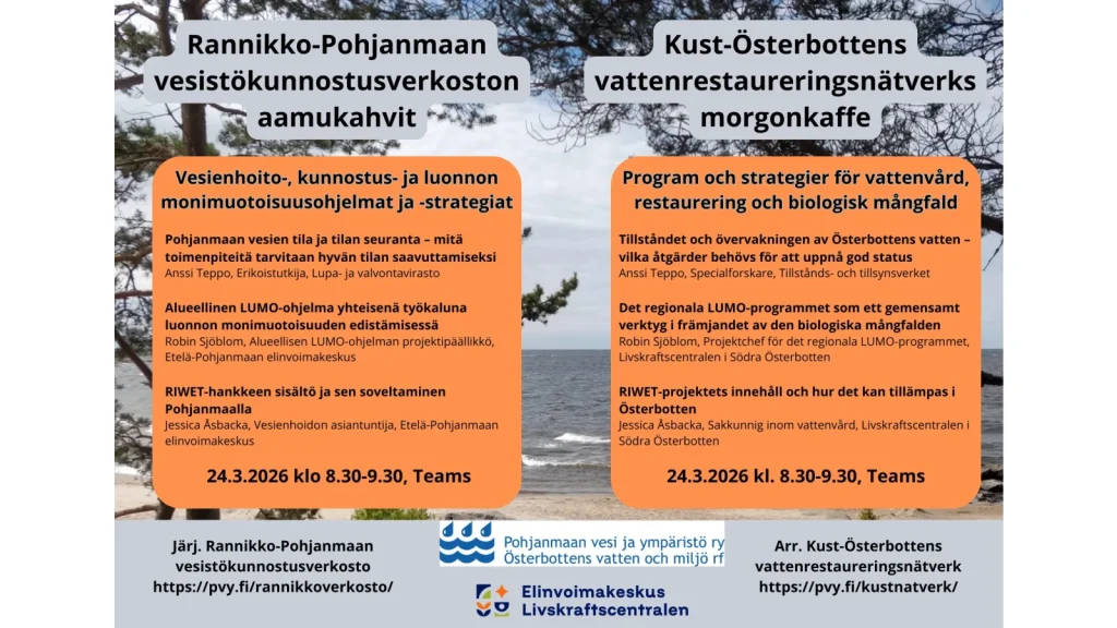 Tervetuloa osallistumaan Rannikko-Pohjanmaan vesistökunnostusverkoston aamukahviwebinaareihin keväällä 2026.