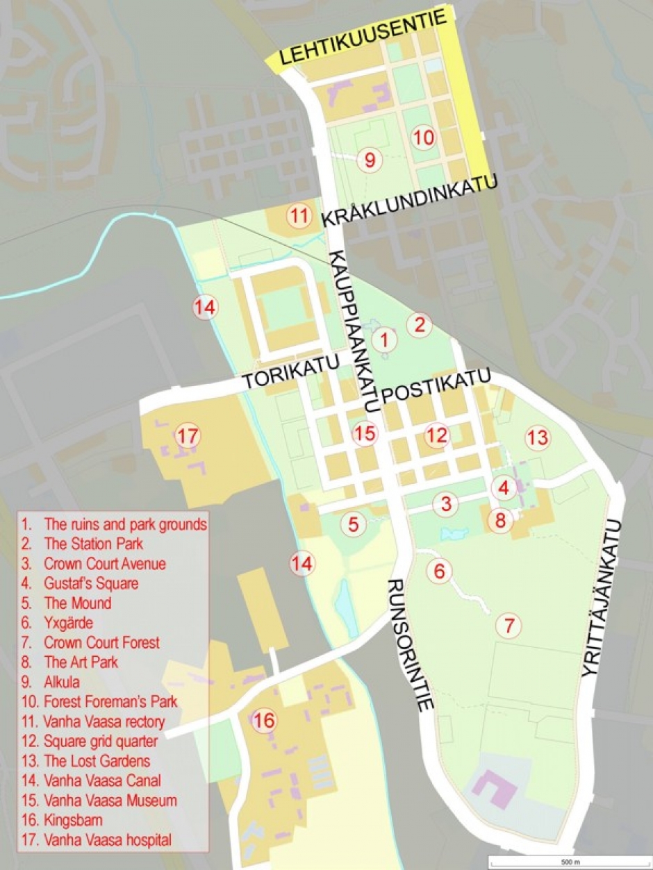 Vaasa city was founded in 1606 by King Karl IX. The city developed around the Church of Holy Mary, a well-built stone building, and during the 17th and 18th centuries a symmetrical street plan was devised for the newly establishing settlement. The aim was to create a ‘green garden town’, both for aesthetical pleasure and also as a safety tactic for fire prevention. Following a decision by King Gustav III, Superintendent Carl Fredrik Adelcrantz drew a town plan in 1777, which included the Crown Court Avenue. This green pedestrian area was to be established, according to the king to “enhance the beauty of Vaasa and indeed the whole country”.