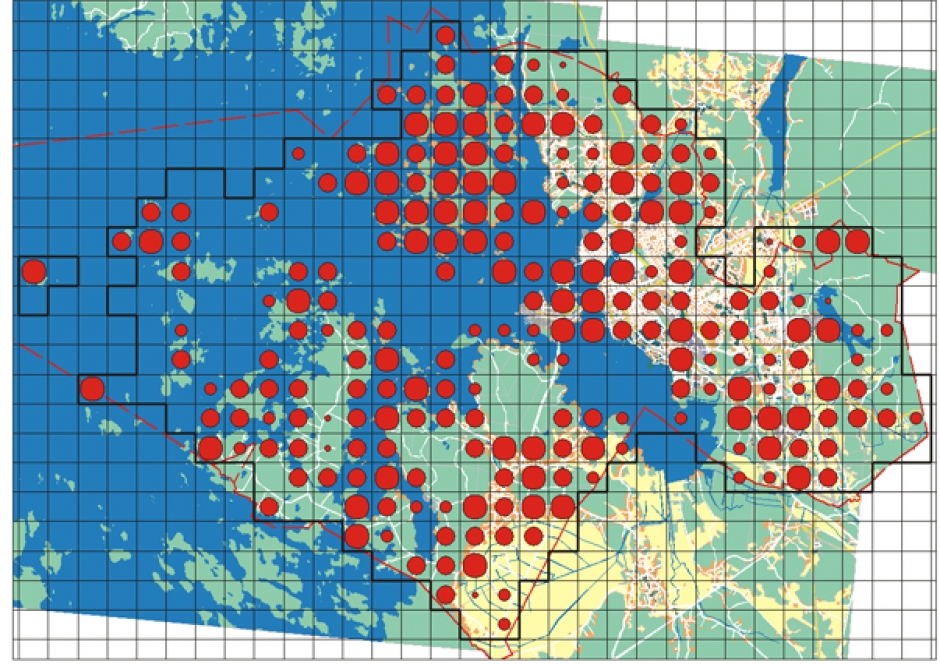 Distribution in Vaasa. The barn swallow is a bird species dwelling in built up areas. It was observed during the nesting season of June to August in over 200 survey blocks. It is a commonly occurring bird, particularly near countryside settlements and is an awaited seasonal guest, signaling that summer is on the horizon. Despite this, however, one individual swallow does not ultimately mark the beginning of the summer months. The first swallows may arrive already at the end of April during the final spring days, when frost conditions may still be present.