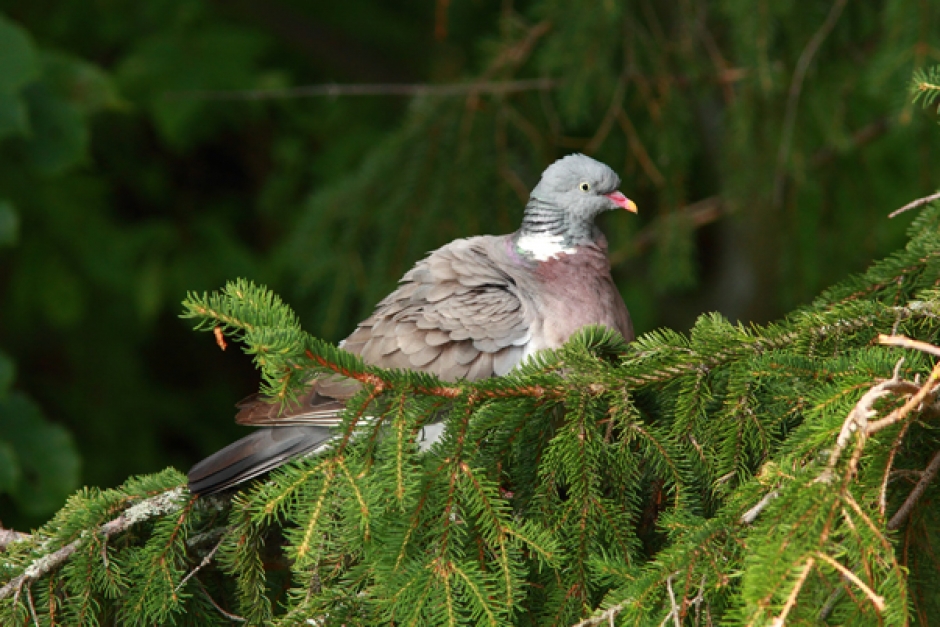 Habitat. The common wood pigeon nests in forests. It prefers coniferous forests that have not been thinned, but also thrives in parks, gardens and even urban areas. The common wood pigeon prefers foraging in cultivations and bordering forests.