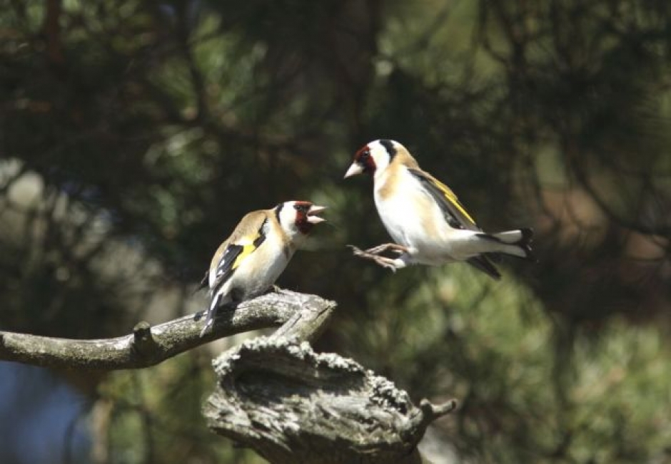 The majority of European goldfinches migrate to southern and Central Europe for winter. The remainder of the population forms in flocks consisting of about ten goldfinches, moving to marginal lands and weed infested terrain, where they forage for seeds from aments.