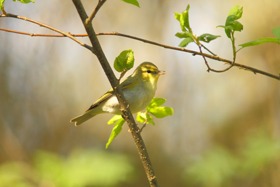 The singing period of the wood warbler is short and the species is very difficult to spot after midsummer. High up from the branches it reveals itself with a mellow ‘piüü’ call, warning its young of the humans moving nearby.