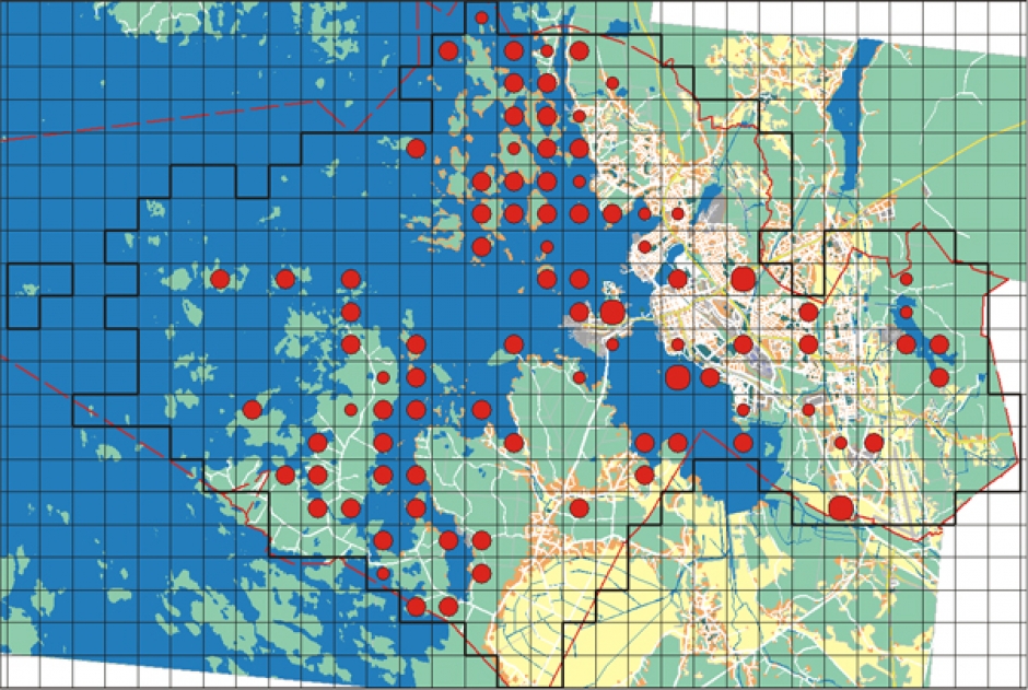 Distribution in Vaasa. During the survey, the common sandpiper was found in roughly 90 survey blocks, with the majority distributed along the coast and inner archipelago. The outer islands of the archipelago provide an unsuitable habitat for the sandpiper. Further inland, the best opportunity to observe this species is at Pilvilampi.