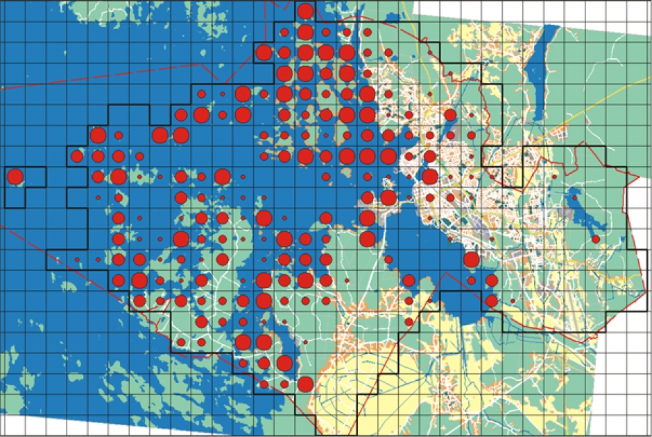 Distribution in Vaasa. Black-headed gull colonies are concentrated to the outer and inner archipelago. However, select pairs may be found nesting inland, for example around the Pukinjärvi lake.