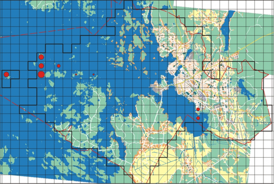 Distribution in Vaasa. The northern shoveler is a rare nester in Vaasa. Nesting has only been confirmed in about ten survey blocks located in the treeless, grass-dominated outer archipelago. In the Torgrund bird survey, conducted in 1990, only 18 pairs of northern shovelers were observed. During spring, the northern shoveler may be observed along city waterfront areas, most likely in the Sundominlahti-bay.