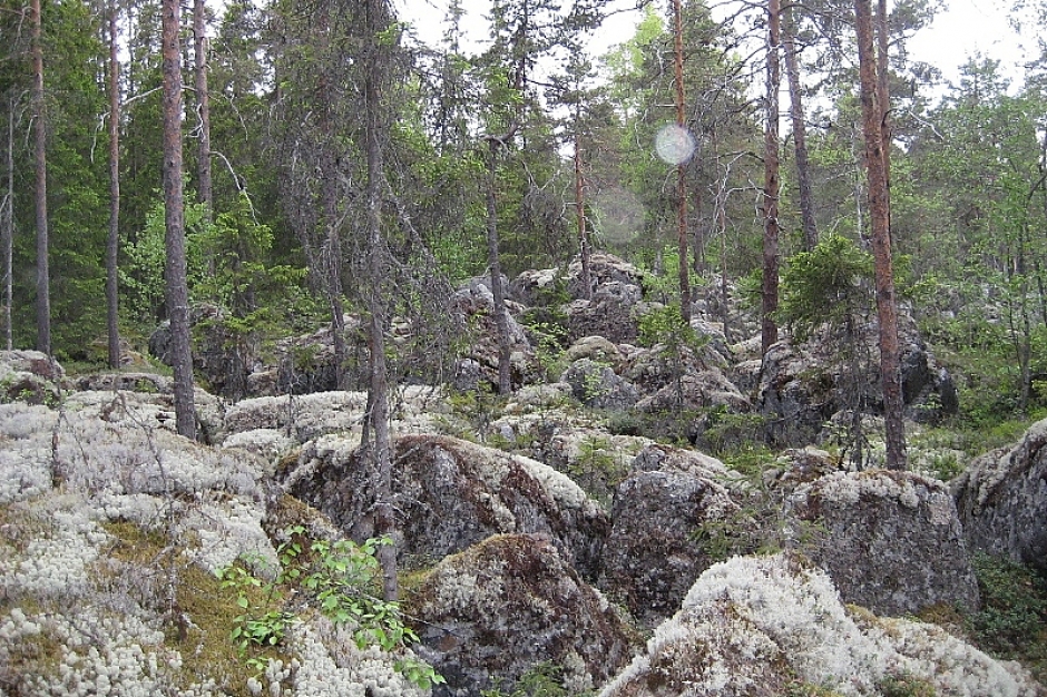 The vegetation in stone fields and rocky terrain often deviates from surrounding vegetation as drought combined with sparse nutrition forms a unique habitat. Such areas have remained unattractive for traditional forestry, which means that the tree population varies in age and dead trees remain where they fall, all of which contributes to increased biodiversity. Boulder- and block fields, as well as exposed bedrock areas, are deemed important habitats in the Forest act and as such should be excluded from forestry activities.