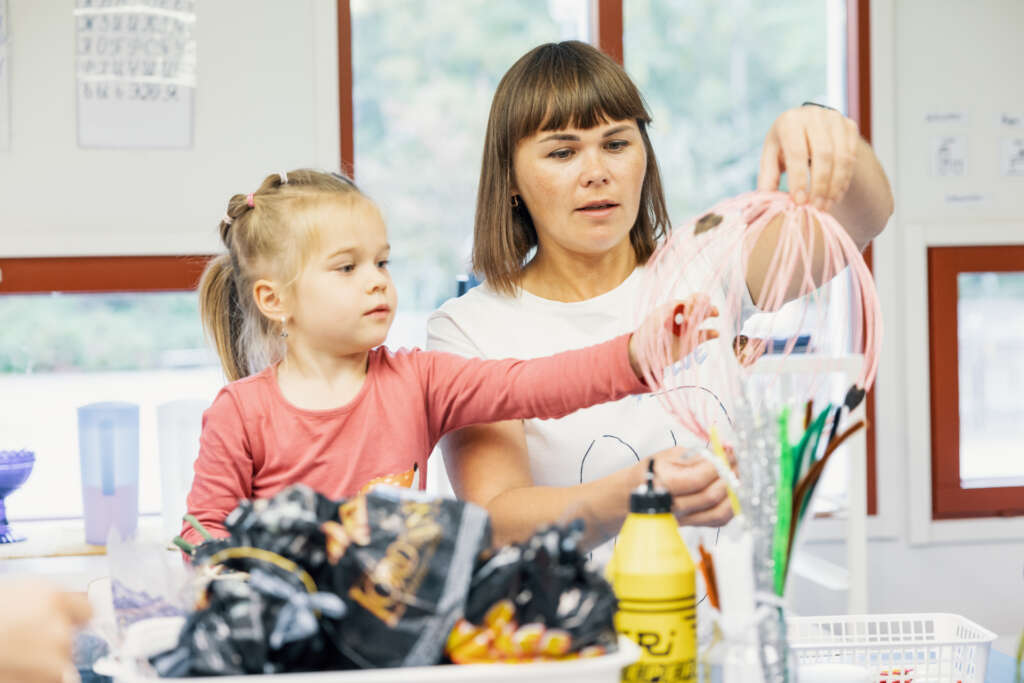 There are always two early childhood education employees and often also volunteers who, for example, lead craft activities and teach the Finnish language.