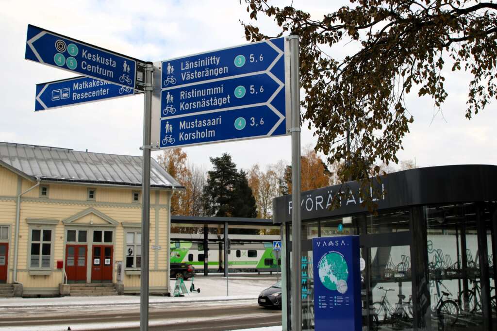 The new signs are part of Vaasa’s walking and cycling promotion programme, which aims to improve the conditions for walking and cycle traffic and related services such as signage and cycle parking.