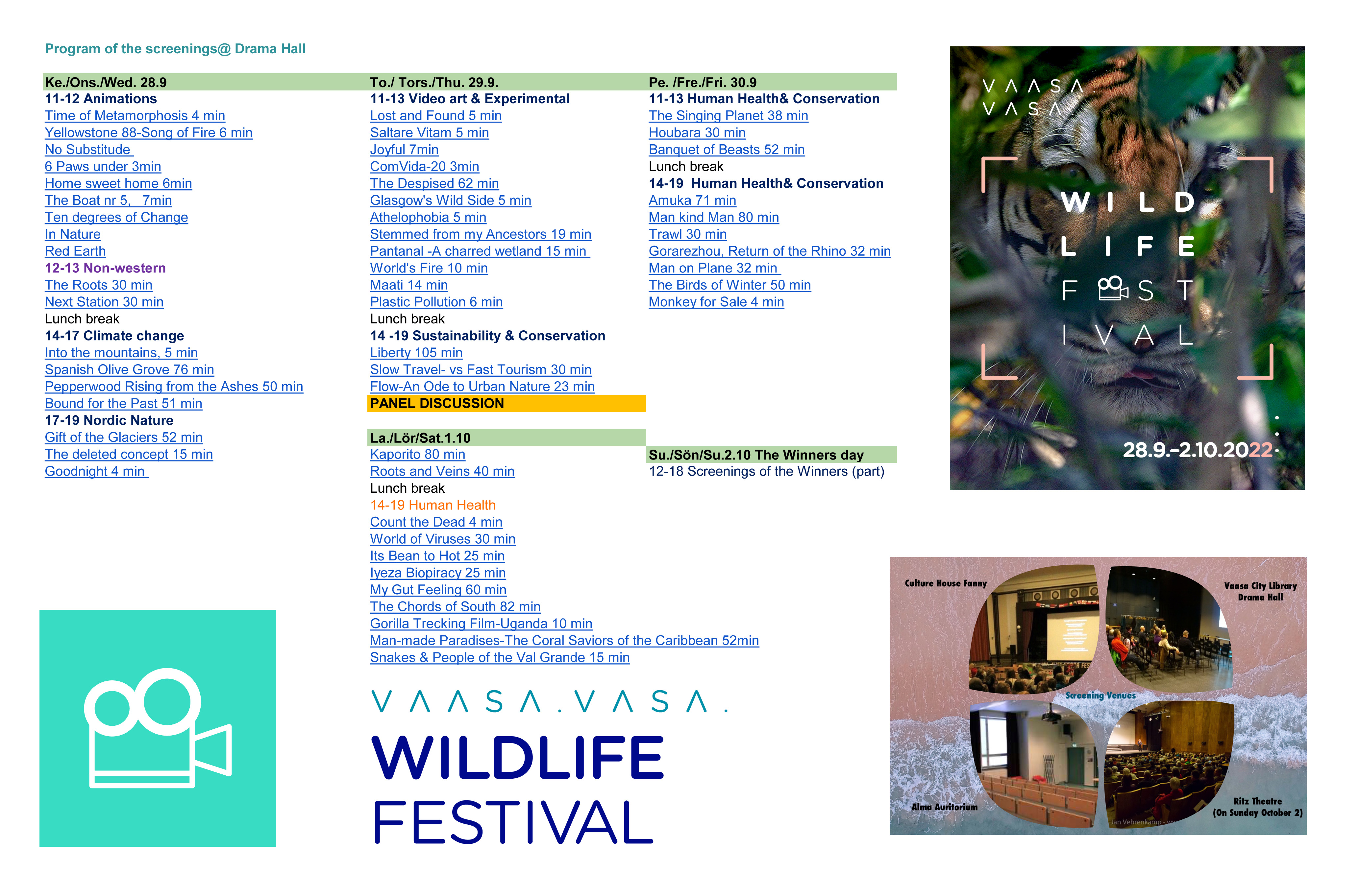 Vaasa Wildlife Festival 2022: Program at Drama Hall