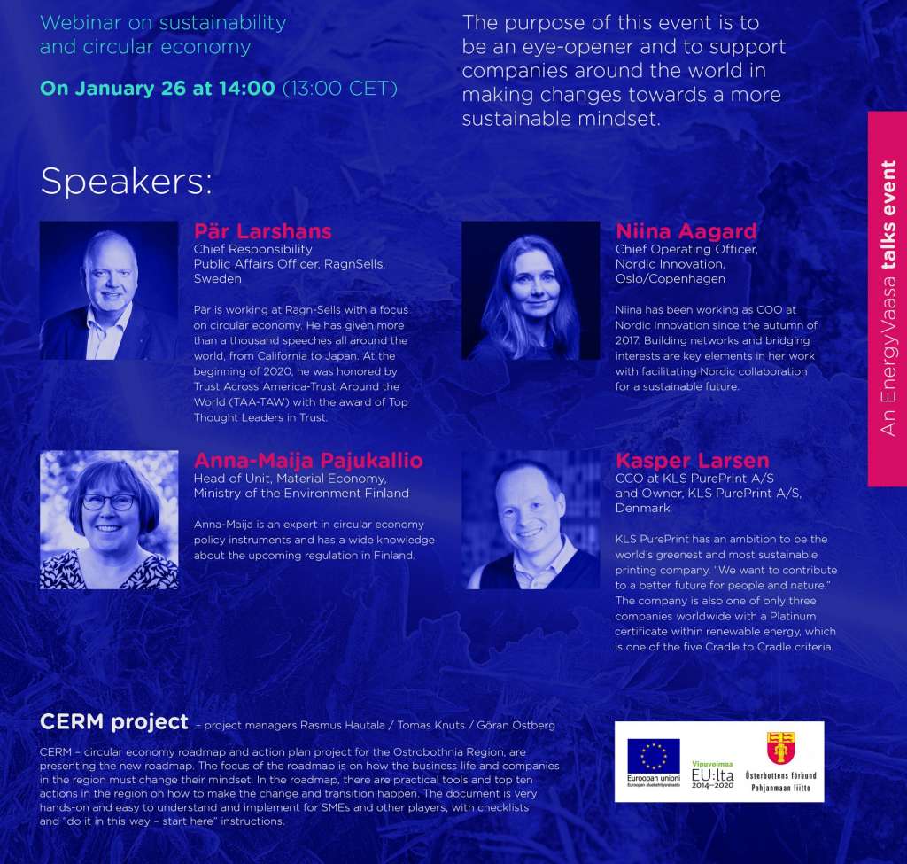 Something enlightening & extraordinary is planned for March 17th – an online event where inspiring business leaders and decision makers come together to discuss Future Sustainable Workplaces, an EnergyVaasa Talks.