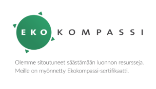 Olemme myöskin sitoutuneet säästämään luonnon resursseja, lisäämään positiivisia ympäristövaikutuksia sekä kehittämään toimintaamme jatkuvasti vastuullisempaan suuntaan. Joulukuussa 2022 saimme Ekokompassi- sertifikaatin, joka on osoitus siitä, että teemme aidosti vaikuttavia ympäristötekoja, joilla on tavoitteet, aikataulut ja seuranta.
