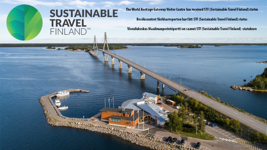 Merenkurkun maailmanperintö ry osallistuu Sustainable Travel Finlandin verkostoon olemalla sosiaalisesti, kulttuurisesti ja taloudellisesti kestävä kohde. Maailmanperintöportin vierailukeskus Mustasaaren Raippaluodonsillan kupeessa tiedottaa ensisijaisesti Suomen ainoasta luonnonperintöalueesta, Unescon maailmanperintölistalla olevasta Merenkurkun saaristosta. Kerromme jännittävästä historiastamme, ainutlaatuisesta maankohoamismaisemastamme sekä kannustamme ja tiedotamme vierailuista lähialueella. Maailmanperintökohde on helposti saavutettava vierailukeskus, joka on mukautettu vastaanottamaan kaikenlaisia vierailijoita.