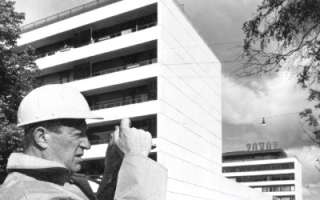Alvar Aallon kanssa yhteistyössä suunnitellut Strömberg Oy:n paritalot Mannerheimintiellä. Revellin tuotanto kes-