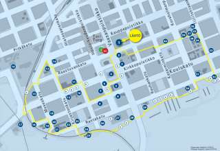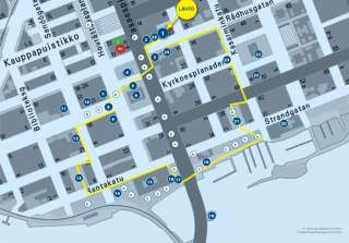 Tästä oppaasta löydät torin ja kaupungintalon kautta kiertävän reitin, jonka varrella on lukuisia mielenkiintoisia kohteita, joita voit pysähtyä katselemaan ja lukea niistä tarkemmin. Myös pidempiä reittejä sisältäviä kävelyoppaita on olemassa.