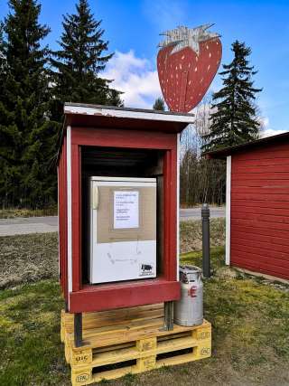 Mistä oikein on kyse? Monet tuottajat ovat pystyttäneet teiden varsille pieniä, itsepalveluperiaatteella toimivia lähiruokakioskeja. Lähiruokashoppailun aarreaitat sijaitsevat pienen matkan päässä toisistaan, mutta autolla tai pyörällä matka kylien välillä taittuu sukkelasti. Kierroksen voi aloittaa vaikka Finbyn kylän vadelmakioskilta (Strandgärdståget 31). Maukkaat marjat on valmiiksi pakattu ja hinnoiteltu ja ostokset voi maksaa käteisellä sille varattuun lippaaseen. Valikoima vaihtelee, mutta pullo tai pari vadelmamehua kannattaa napata ostoskoriin aina kun sitä on tarjolla. Ilmiselvää tai ei, niin kuvat aurinkoiselta vadelmamehupiknikiltä ihan huutavat päästä somepostauksiin.