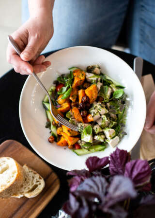 Nauti leipomotuotteista Aroman terassilla, jossa on tänä vuonna enemmän istumapaikkoja. Aromassa on tarjolla suosittuja salaatteja, paikallisesti paahdettua kahvia ja voilla leivottuja pullia. Voit myös ostaa tuoretta hapanjuurileipää kotiin vietäväksi illallisen kanssa.