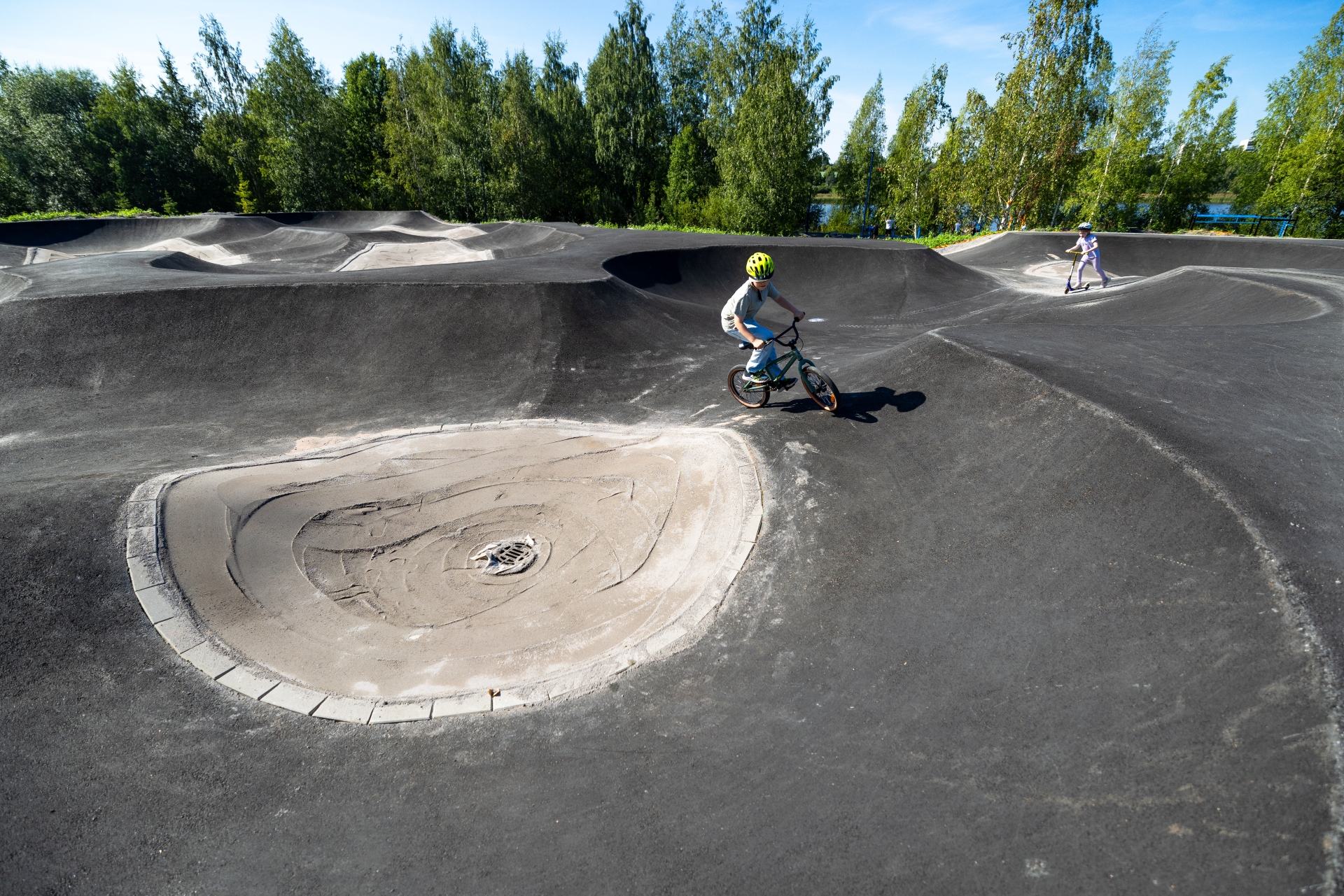 – Pumptrackbanan, som man har väntat länge på, är ett fantastiskt tillägg till den helhet som Metviksparken utgör. Den minskar också trycket på skejtparken, då en del av utövarna kan flytta över till pumptrackbanan. Metviksparken är en fantastisk plats att tillbringa tid på medan man håller på med olika aktiviteter. Något att göra finns för alla åldrar från småbarn till seniorer, beskriver chefen för idrottsverksamheten Mika Lehtonen.