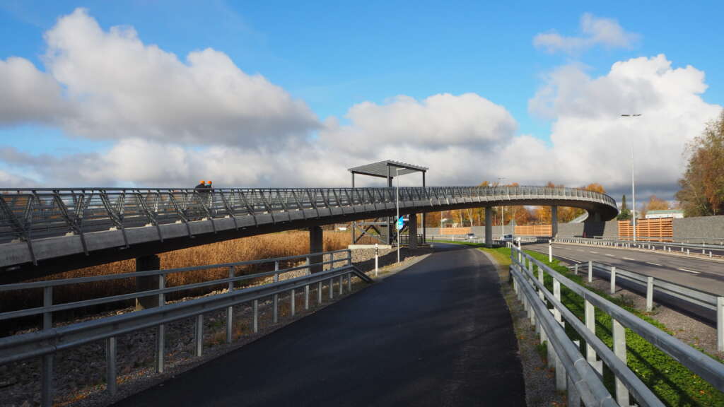 Bron som finns vid Metviken och har formen av ett utdraget S har förtrollat invånarna sedan i höstas. Den nya bron förenar stadsdelarna i norr med Metvikens kvalitetskorridor för gång och cykling som ska byggas nästa år, vilket gör att utöver det ståtliga genomförandet har bron också en stor betydelse med tanke på gång- och cykelnätet samt trafiksäkerheten.