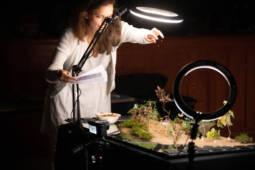 Under föreställningen skapas miniatyrvärldar utifrån berättelserna och den franska cirkusartisten och dansaren Amandine Doat kliver in i dessa. Konserten leds av den mångsidige musikern Tomas Takolander och verket är regisserat av Finlands första professor i cirkuskonst, Luis Sartori do Vale.