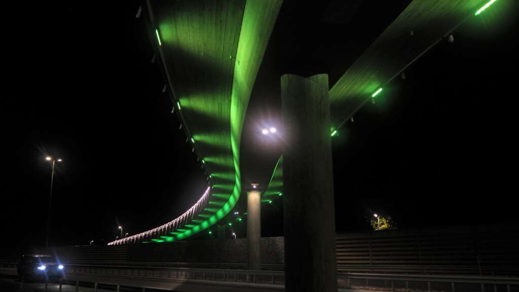 Go Käärijä! Alskatvägens gångbro lyser i grönt 12–15.5.