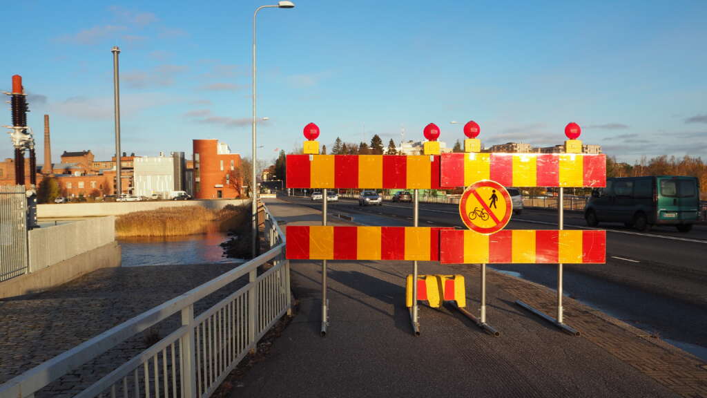 Framför EnergyLab Vaasa i den ända av Brändö bro som vetter mot universitetet utförs grävarbeten med början 18.10.2021. Cykel- och gångvägen på brons västra sida är stängd på grund av grävarbetena.