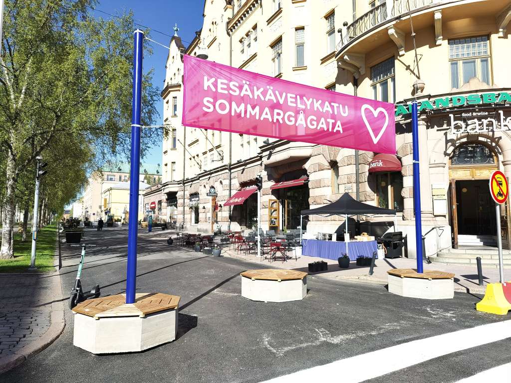 Gågatan på Hovrättsesplanaden förlängs tillfälligt med gatuavsnittet mellan Kyrkoesplanaden och Rådhusgatan 28.5–30.9. På sommargågatan kommer det att finnas bl.a. en portkonstruktion, blomplanteringar och flyttbara bänkar, och dessutom kommer restaurangernas terrasser att vara större än vanligt. Gågatan medför också ändringar i trafikarrangemangen.